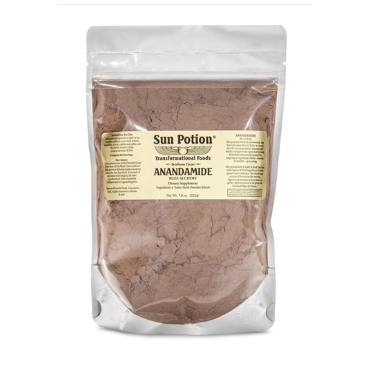 Our Anandamide is hand-crafted in small batches using organic or wildcrafted ingredients, freshly-ground spices, and Love. This blend may activate and harmonize the Nervous, Digestive, & Immune systems and is a perfect alchemical treat to brighten the mind and open the heart.